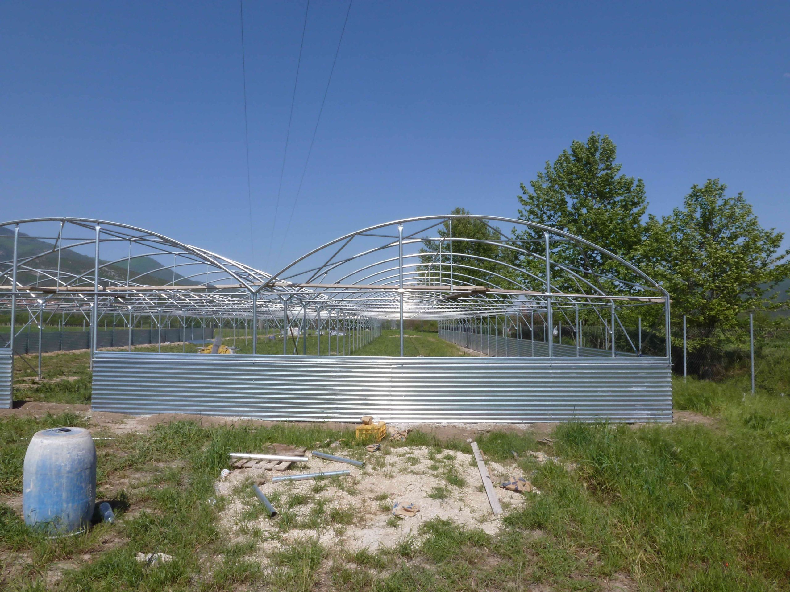 Περιμετρικά σε ύψος 1m από το έδαφος υπάρχει λαμαρίνα γαλβανιζέ πάχους 0,45mm (συνολικά 158m2 μέτρα λαμαρίνα).