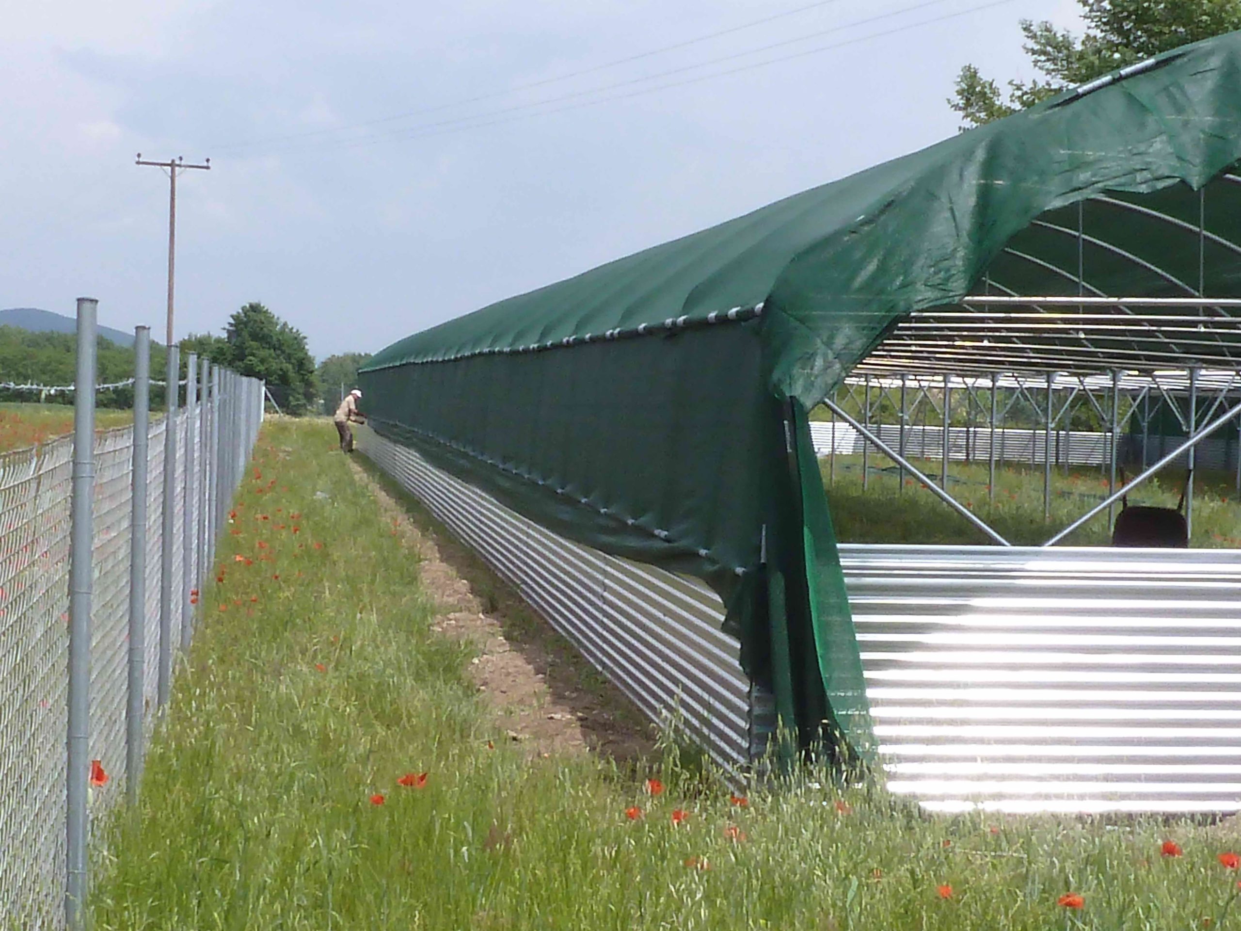 Περιμετρικά σε ύψος 1m από το έδαφος υπάρχει λαμαρίνα γαλβανιζέ πάχους 0,45mm (συνολικά 158m2 μέτρα λαμαρίνα).